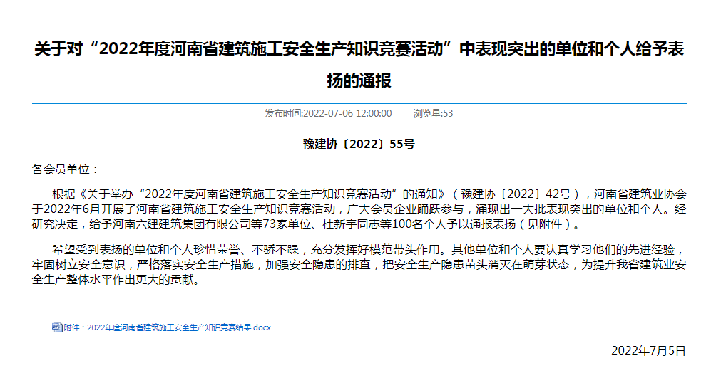 近日,河南省發(fā)改委、科技廳等五個權威部門聯合發(fā)文,公司企業(yè)技術中心獲批為 河南省企業(yè)技術中心,是繼2021年度獲批信陽市施工技術工程